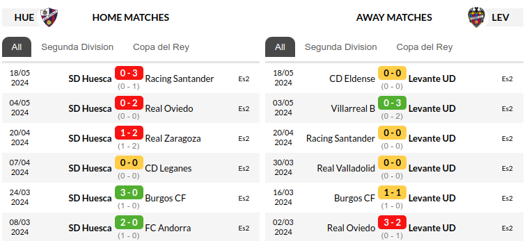 Huesca vs Levante Prediction: Standing