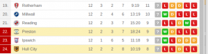 - They are sitting in the relegation zone with nine points having won two games, drawn three and lost seven.