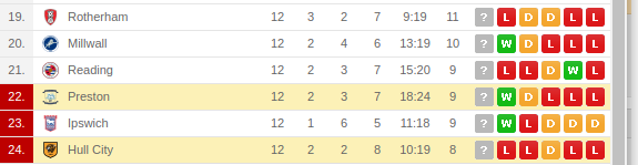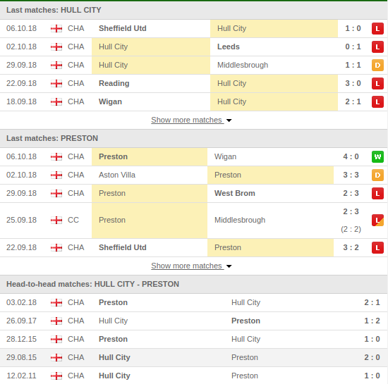 Hull city vs Preston Predictions & H2H: Standing