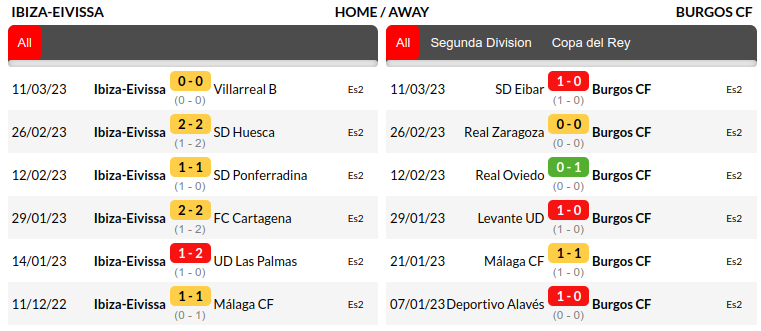 - In their last six league matches, Ibiza has won one, drawn four, and lost one, while Burgos has won one, drawn three, and lost two.