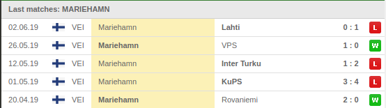 - Mariehamn suffered a 1-0 loss to Lahti to end their three consecutive unbeaten games run.