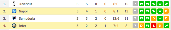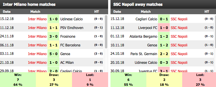 Inter have won one game, drawn three and lost one in their last home meetings with Napoli.