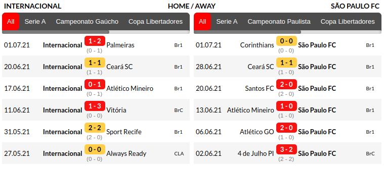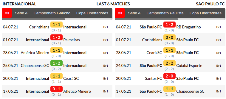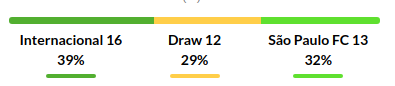 Internacional has claimed three wins in the last five meetings. Sao Paulo has one to their name in the last five.