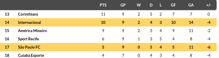 Internacional has claimed one win across six matches, and have lost four in their last ten matches.
