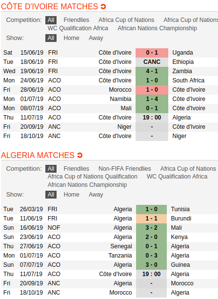 Ivory Coast Vs Algeria Prediction: Home/Away Matches