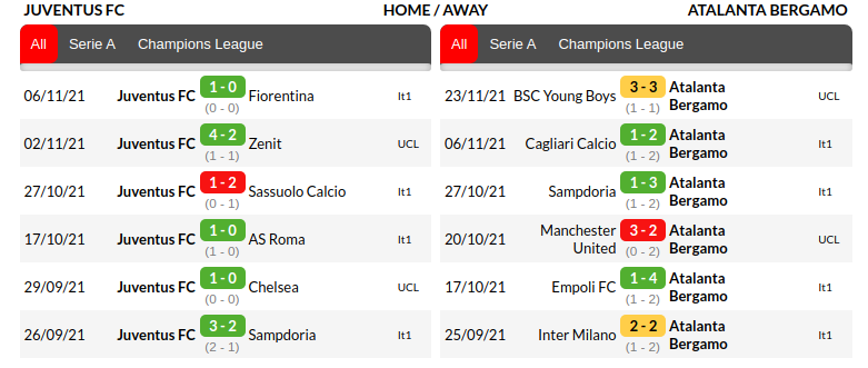 Juventus vs Atalanta Prediction: Home/Away Matches