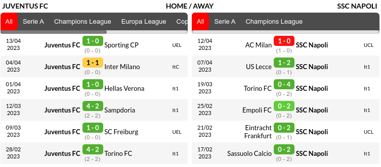 - Napoli, however, come into this match after just one win in their last five competitive outings, which saw them eliminated from the UEFA Champions League and have a few points shaven off their comfortable Serie A lead.