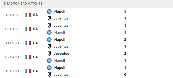 - They aim to continue this streak with a win against Napoli, who are aiming for only their fourth-ever league double over Juventus.