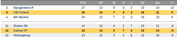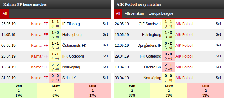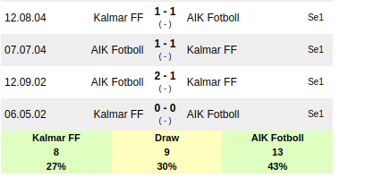AIK Football has won in all their last two meetings with Kalmar securing 1-0 win in both games.