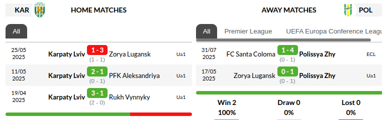 May 2025 | Premier League | Polissya Win | 2-1 |