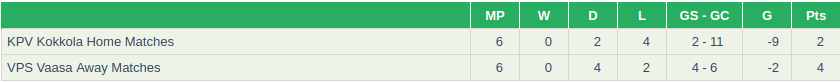 KPV Kokkola Vs VPS Vaasa Prediction: Standing