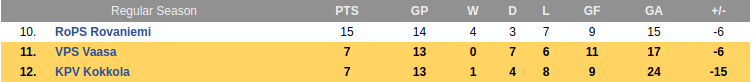 - KPV and VPS are struggling at the bottom of the table with seven points each as the Finland Veikkausliiga enters its match day fourteen.