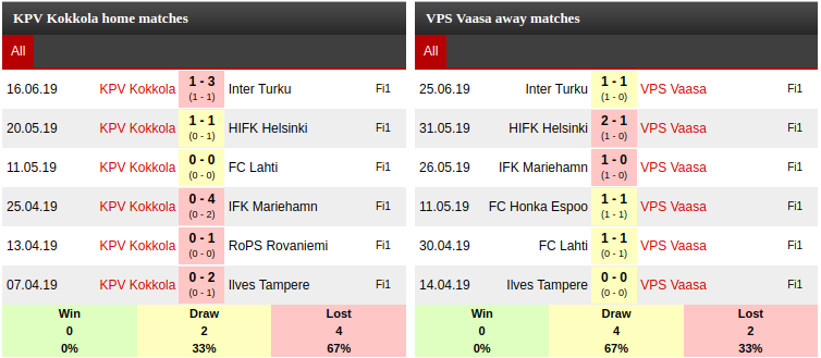 KPV Kokkola Vs VPS Vaasa Prediction: Current form