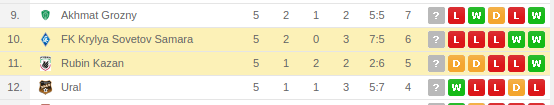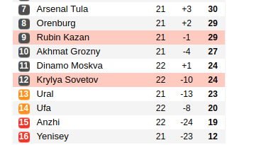 Kryliya Sovetov Vs Rubin Kazan Prediction: Standing