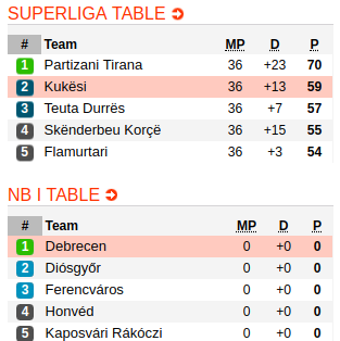Kukesi Vs Debreceni VSC Prediction: Standing
