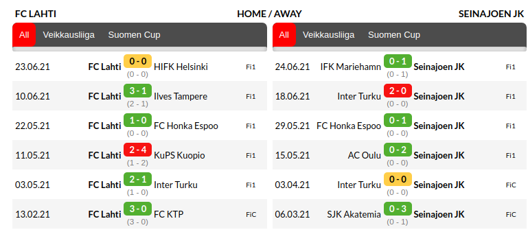 Lahti vs Seinajoen JK Prediction: Home/Away Matches