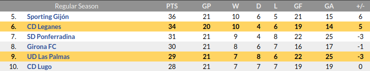 - Las Palmas beat 2nd placed Mallorca 1-0 last time out to record their fourth win from their last ten matches and climb to 9th on the log.