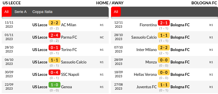 In the previous Serie A encounter between these two teams at Stadio Comunale Via del Mare last season, Bologna emerged victorious with a 3-2 scoreline.