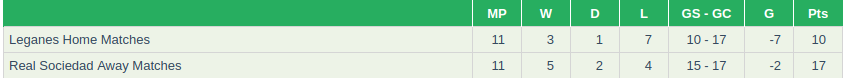 Leganes vs Real Sociedad Prediction: Home and away Form