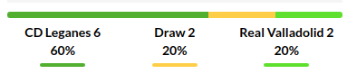 Leganes have won three of the last five meetings. Two of those have come on the at home.