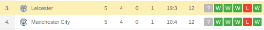 - The Foxes have averaged two goals in their last four matches and have only lost twice in their last 10 matches winning the other 8 in that period.
