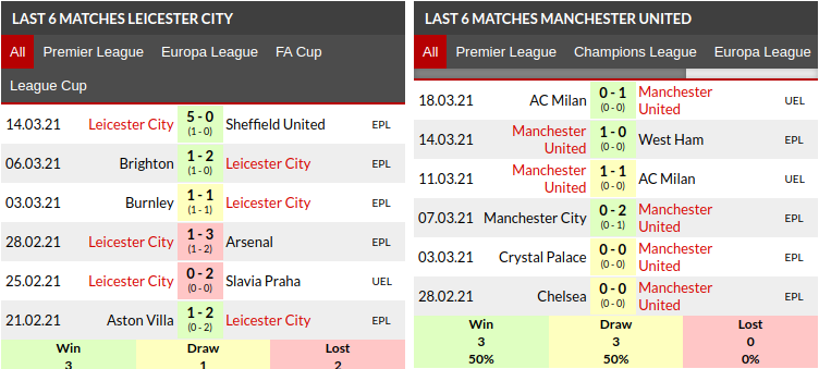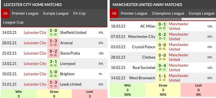 Leicester vs Manchester Utd Prediction: Home/Away Matches