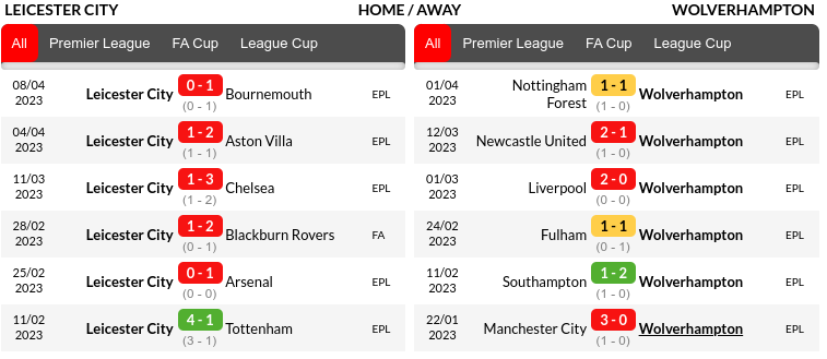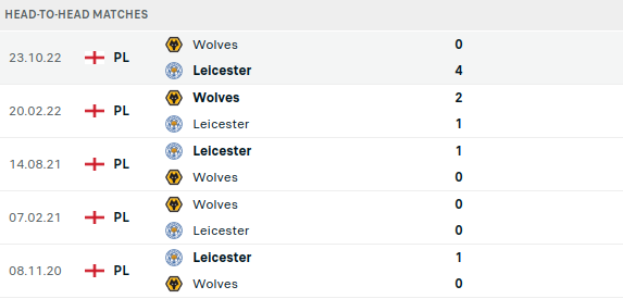 - The previous Premier League encounter between these teams saw Leicester win 4-0 at Molineux Stadium in October.