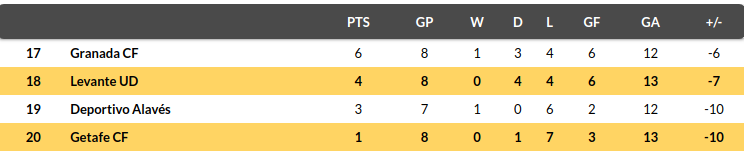The Rock bottom Getafe have just one point from their first eight matches losing the other seven.