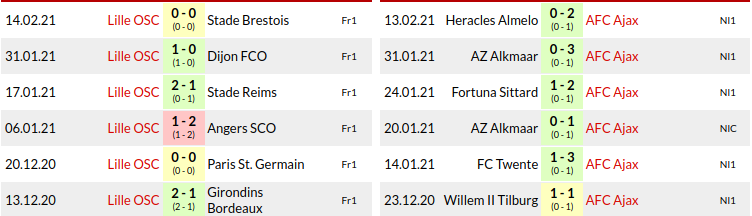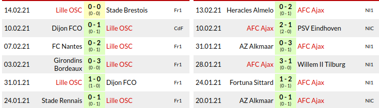 Lille vs Ajax Predictions: Current Form