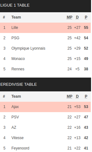 Lille vs Ajax Predictions: Standing