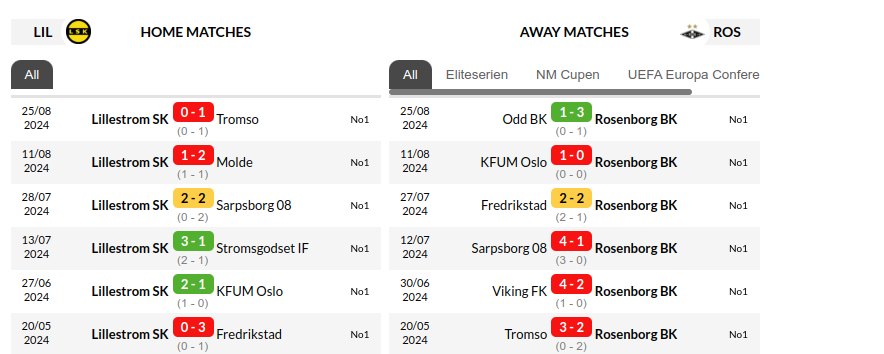 The head-to-head record favors Rosenborg, who have dominated their previous encounters against Lillestrøm. However, Lillestrøm’s home advantage and their determination to improve their league position could make this match a competitive affair.