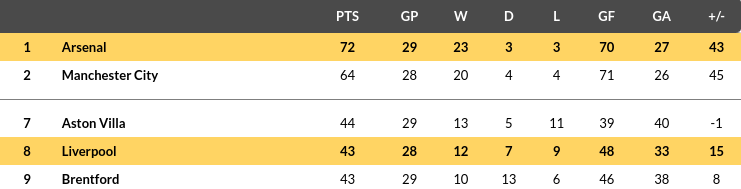 Liverpool vs Arsenal Prediction: Standing
