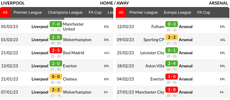 - Arsenal, on the other hand, are in great form and are eight points clear at the top of the table after winning their last seven league matches, including a 4-1 victory over Leeds United at home.