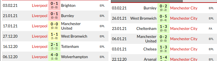 - Liverpool welcome Manchester City to Anfield on Sunday after losing back-to-back matches at home ending their four years dominance at home.