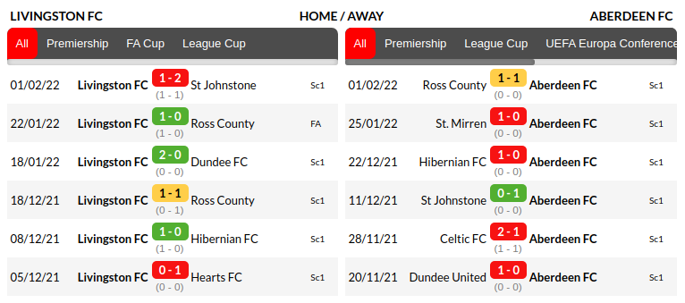 Livingston vs Aberdeen: H2H