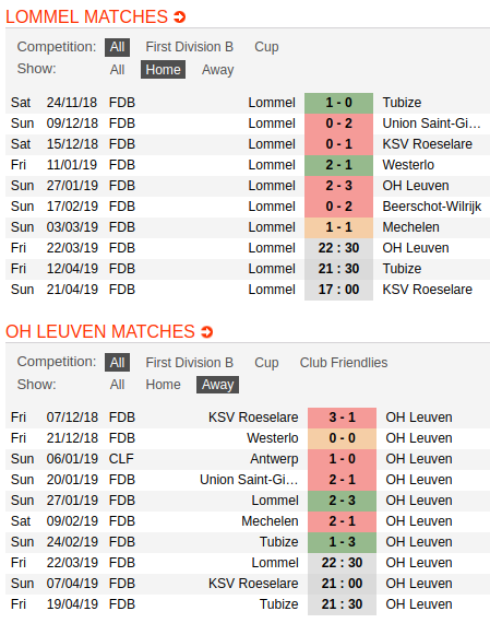 Lommel have won one game, drawn three and lost one in their last five home meetings with Leuven.