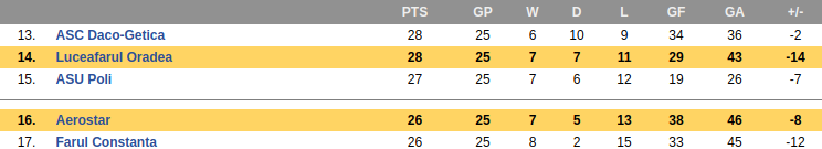 Luceafarul Oradea Vs CS Aerostar Bacau Prediction: Standing