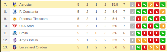 - Aerostar failed to build on their 2-1 win over Politehnica as they suffered a stunning 2-1 loss to U. Cluj at home.