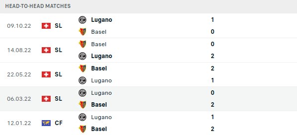 - In their previous Super League encounter, Lugano claimed a 1-0 win over Basel.