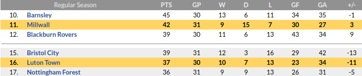 - Luton has claimed one win from their last seven matches, but are still eight points above the relegation zone heading into the midweek fixtures.