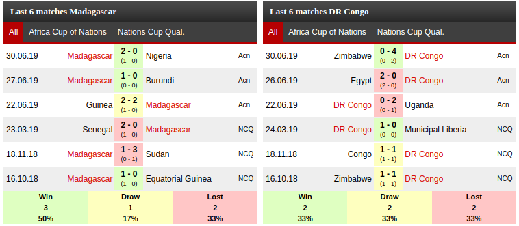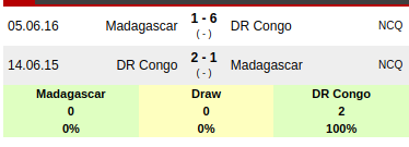 Madagascar vs DR Congo: Head to head
