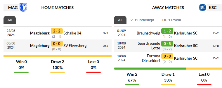 The head-to-head record favors Karlsruher SC, who have dominated their recent encounters against Magdeburg. However, Magdeburg’s home advantage and their determination to secure a victory could make this match a competitive affair.