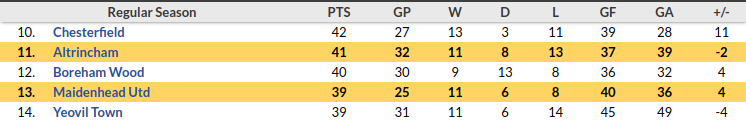 - They lie in the middle of the table two points behind their opponents Altrincham.