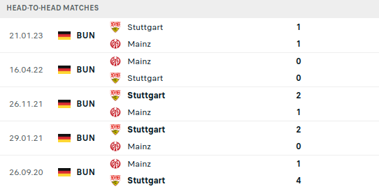 - Notably, Stuttgart has an undefeated record against Mainz since their promotion to the Bundesliga in 2020, having won three matches and drawn two.