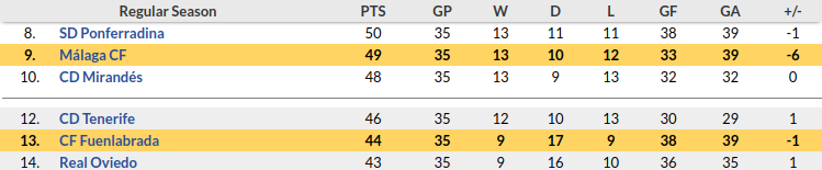 Malaga vs Fuenlabrada Prediction: Standing