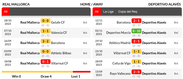 Securing a first home win in LaLiga this season has proven challenging for Mallorca, with five draws and one loss in six games. Alavés, on the other hand, is seeking their first away win in league matches this season, having recorded five losses and two draws on the road. Los Babazorros currently find themselves on a 22-match away winless streak (W0 D5 L17), with their last away win dating back to October 2021 against Cádiz.
