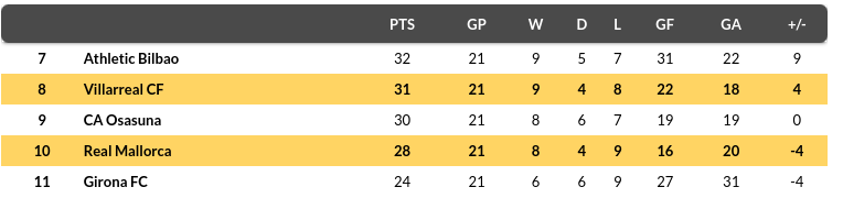 Mallorca vs Villarreal Prediction: Standing