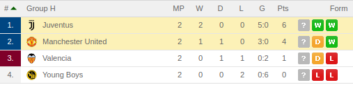 Manchester United vs Juventus Predictions:Standing