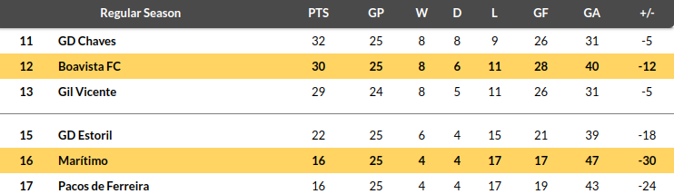 - In league matches away from home, Boavista has won three, drawn one, and lost eight games this season.
