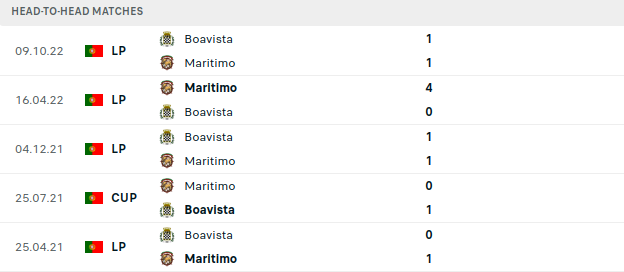 - In their previous six league matches, Marítimo won only one and lost five, while Boavista won one, drew two, and lost three.